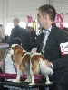 Ecxellent articulé, excellente tête avec crêne plat. Chanfrein de bonne longueur. Excellente épaule et ossature, poitrine importante. Yeux ronds, grands foncés. Angulation postérieurs un peu droit. Chienne puissante construite en lice. Soie de qualité